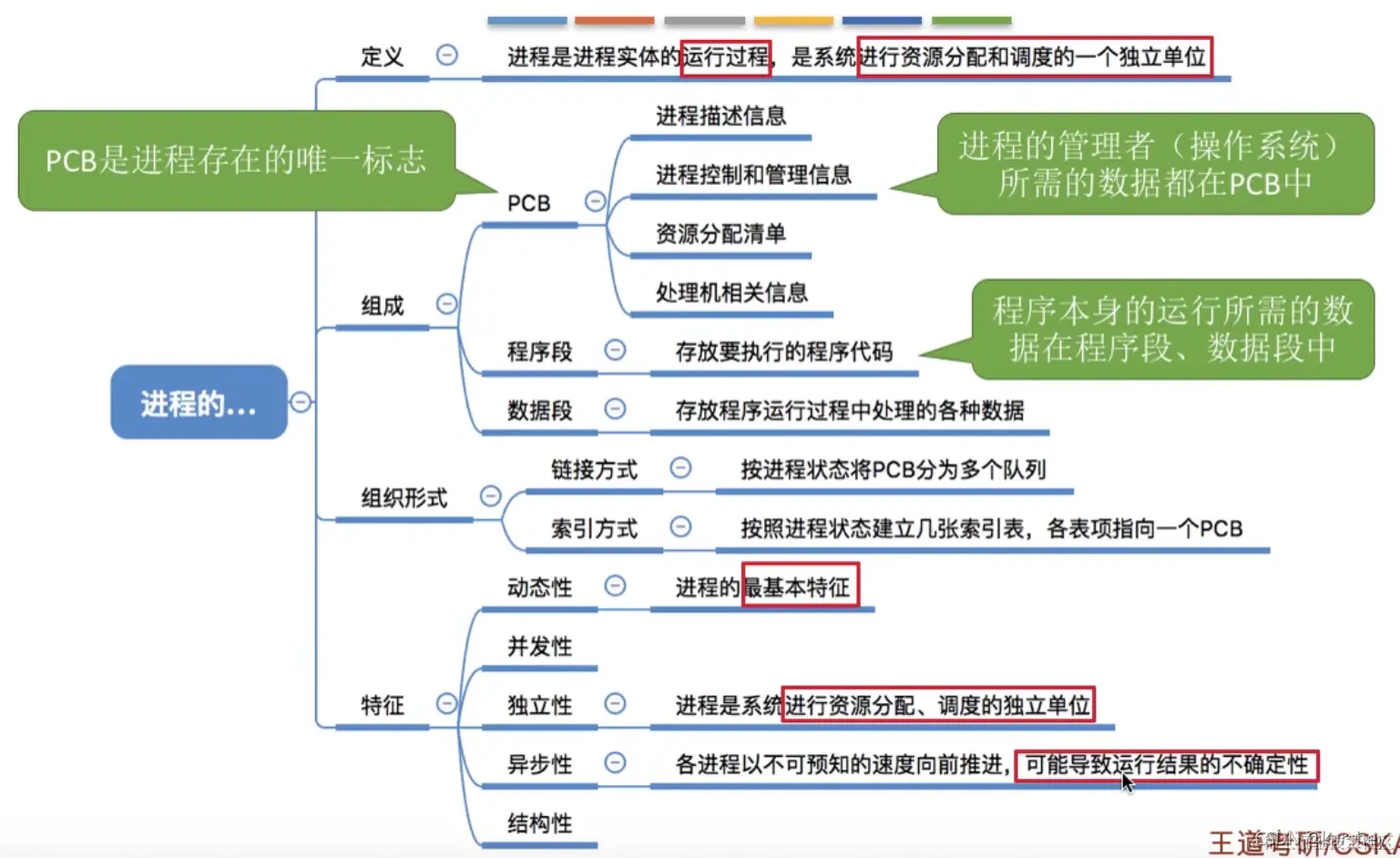 3.进程是具有独立功能的程序在数据集合上运行的过程(强调“动态性”它是系统进行资源分配和调度的一个独立单位。