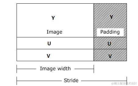 final int yRowStride = yPlane.getRowStride(); // y 行距,= width + padding