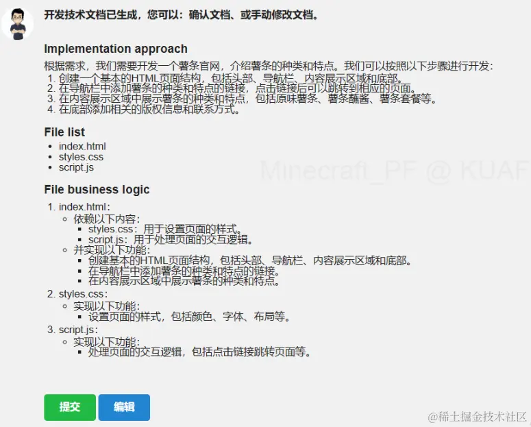 到这里,AI就已经开发好了技术文档,全程我没有进行任何技术性的操作,就是根据开发流程点了几下提交