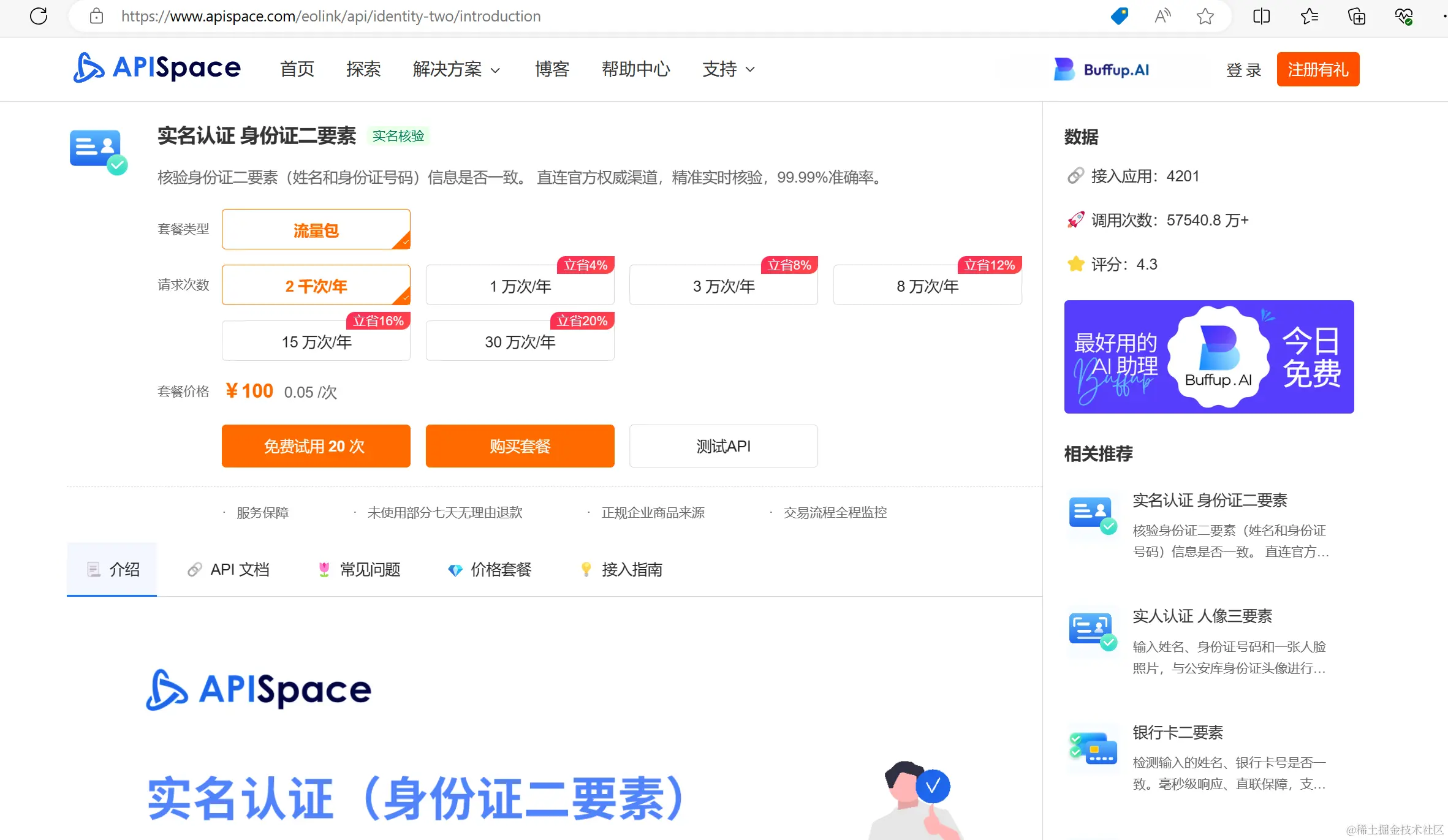 APISpace 的 实名认证(身份证二要素API),核验身份证二要素(姓名和身份证号码)信息是否一致。 直连官方权威渠道,精准实时核验,99.99%准确率。