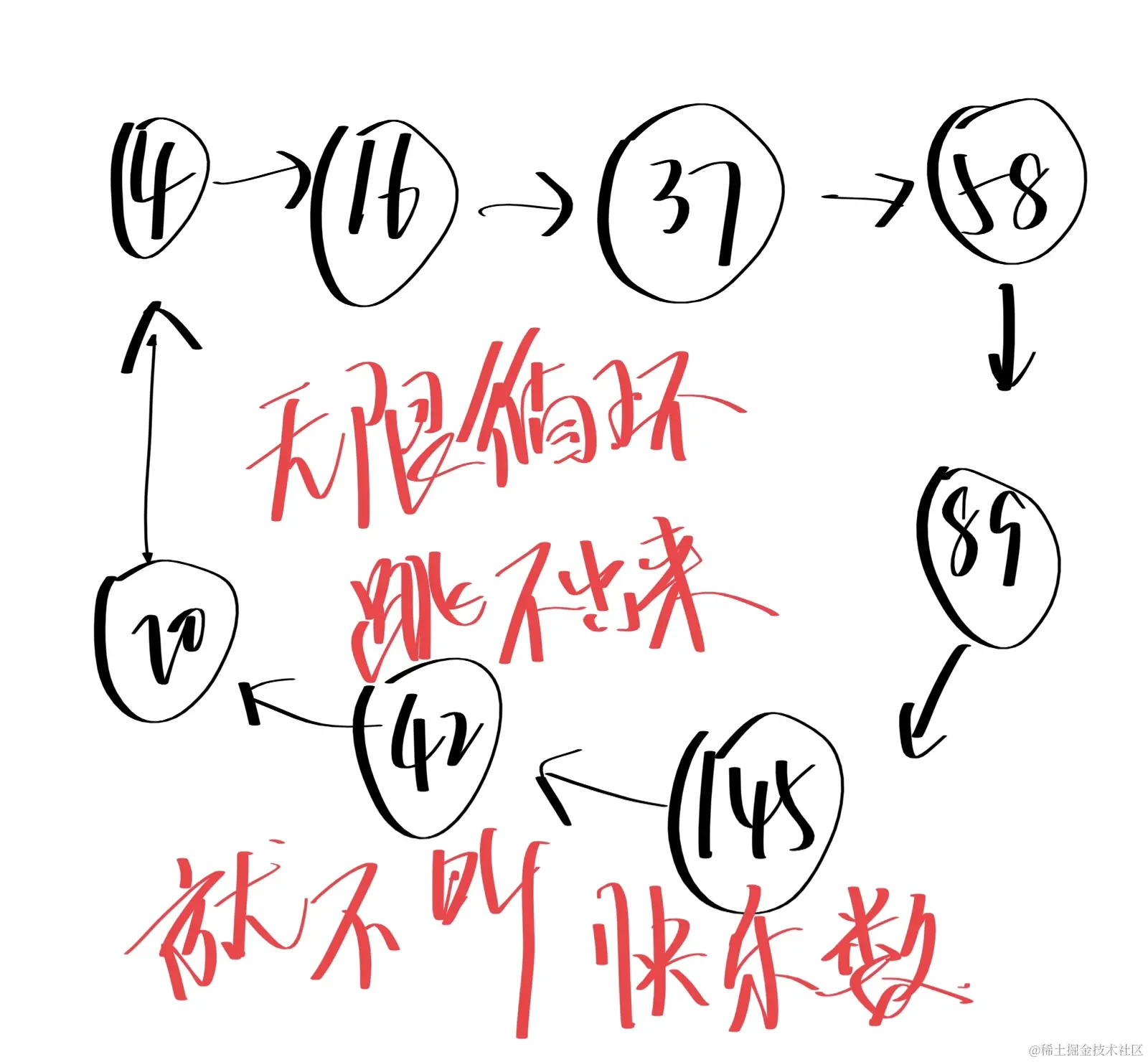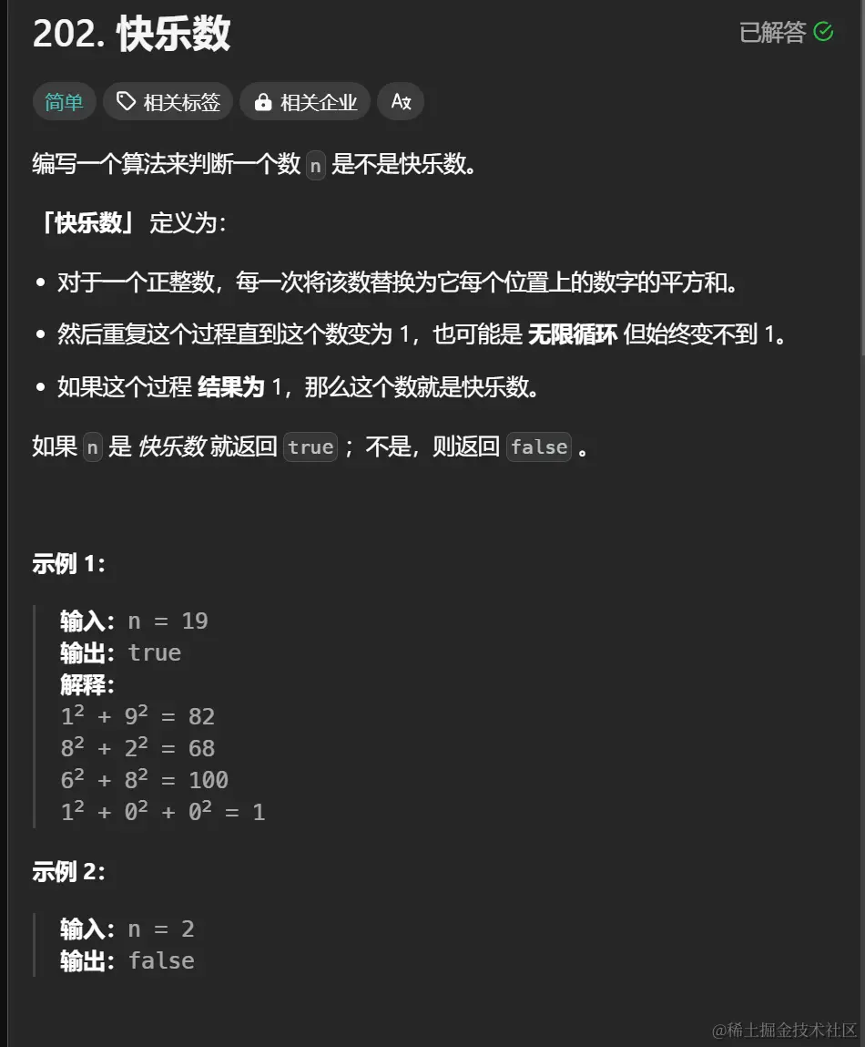 为什么要这样说呢!!!为啥曾经出现过就肯定不是快乐数,以前不懂我现在懂了,就拿2举例,就这样一直下去是跳不出来的是无限循环的,重复出现过的就说明它已经存在了,就不是快乐数。