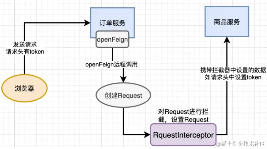 扩展点: feign.RequestInterceptor 每次feign发起http调用之前会去执行拦截器中的逻辑。所以,如果想要在发送请求时增加一些额外请求参数的话,可以继承这个接口,原因是因为openFeign在远程调用之前会遍历容器中的RequestInterceptor,调用RequestInterceptor的apply方法,创建一个新的Request进行远程服务调用。通过过实现RequestInterceptor给容器中添加自定义的RequestInterceptor实现类,在这个类里面设置需要发送请求时的参数。