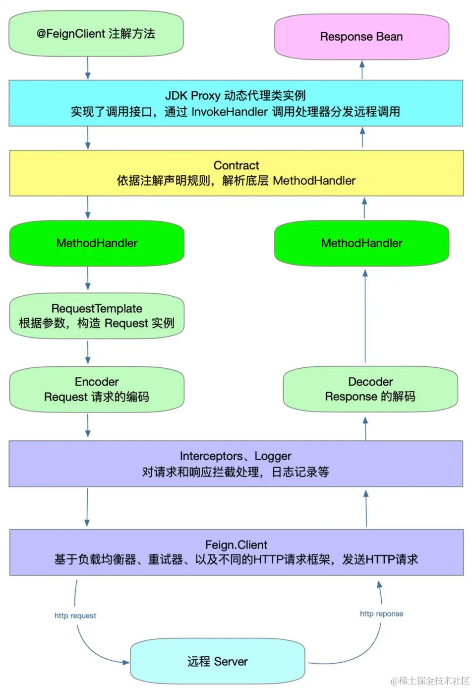 除了内置的HTTP客户端,OpenFeign还允许开发者通过添加相应的依赖和配置来使用Apache HttpClient或OkHttp等第三方HTTP客户端。 Feign发起调用真正执行逻辑:feign.Client#execute (扩展点)