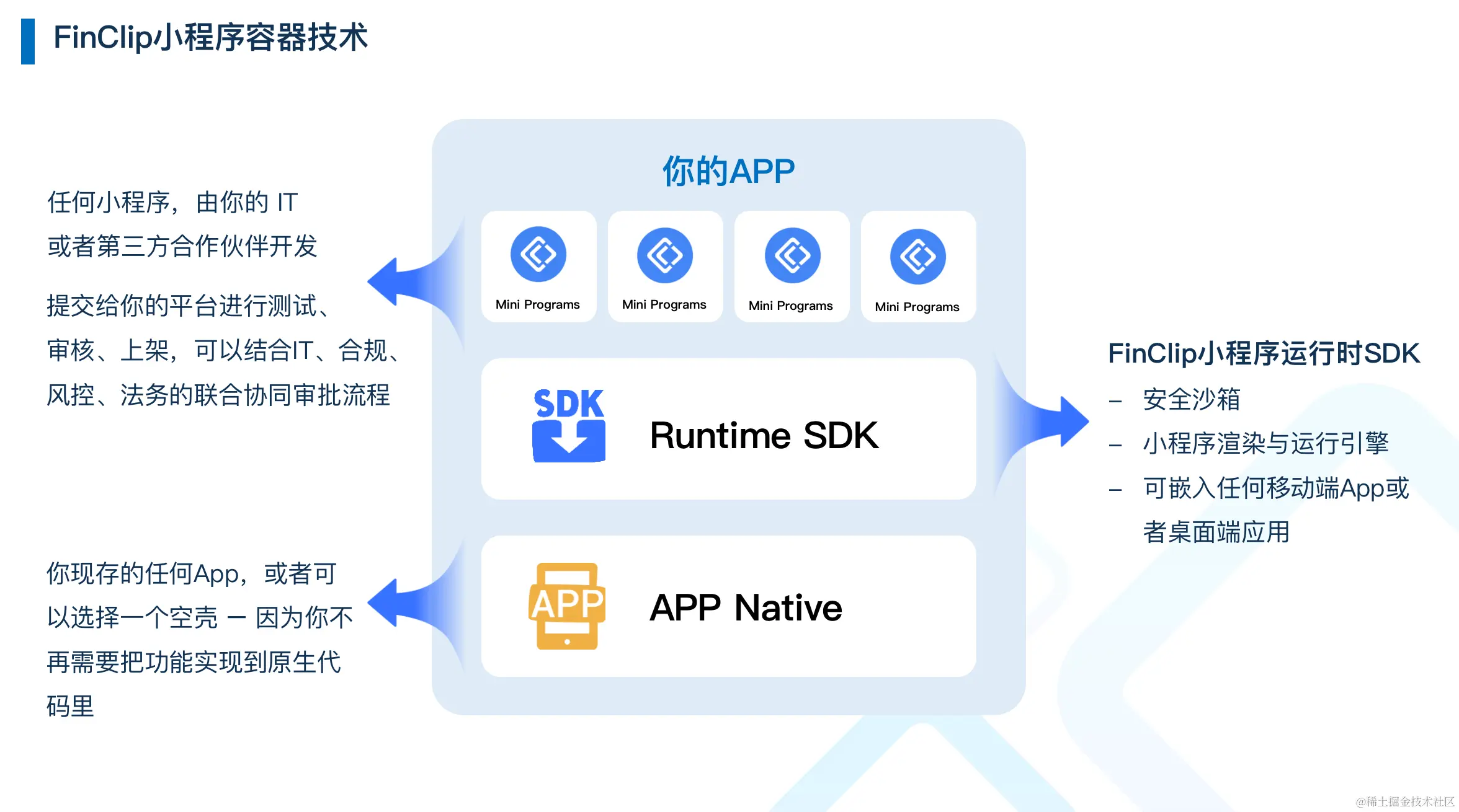 目前市场上比较典型的服务提供商是 FinClip,通过集成 FinClip SDK,任何企业都可以轻松、简单的获得技术大厂们才具备的技术能力。