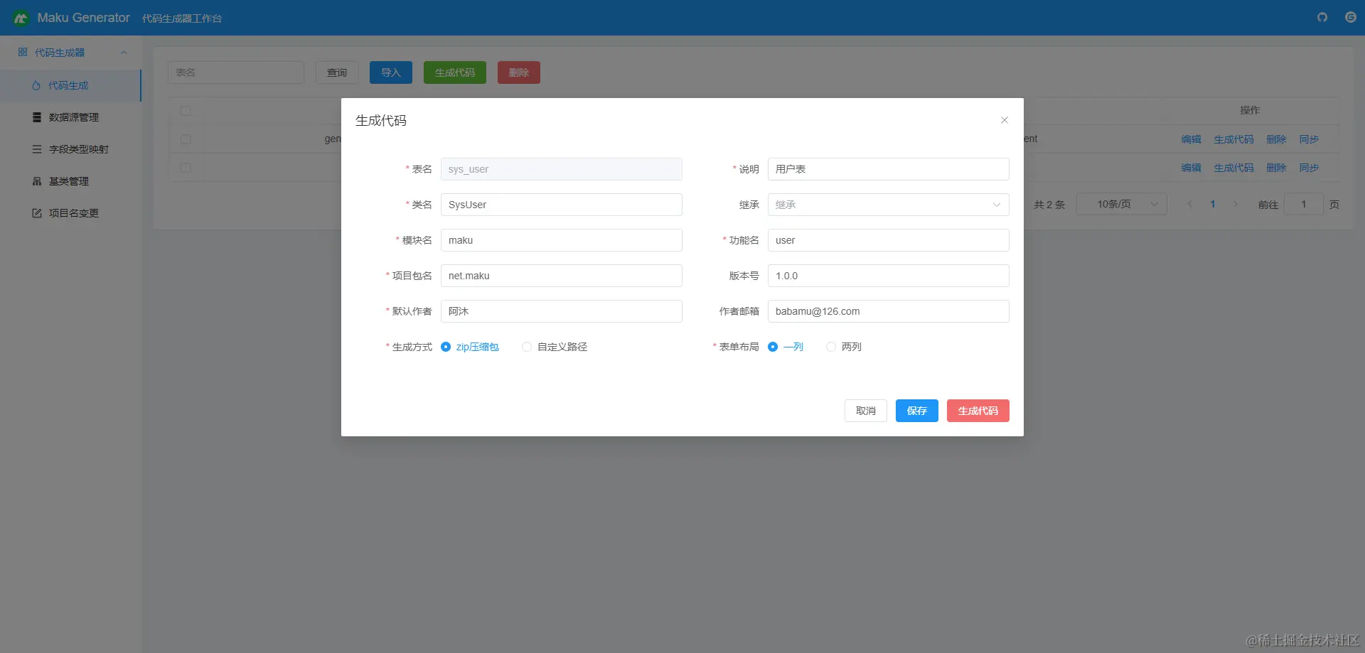 最近在浏览 Github 的时候,发现了一款简单好用的低代码生成器 maku-generator。