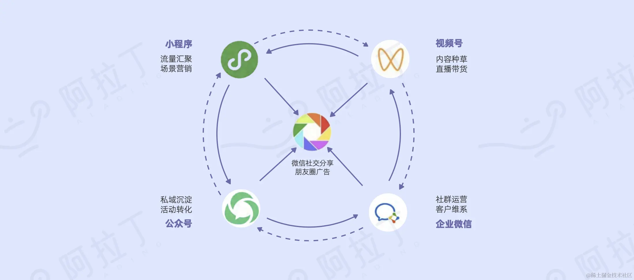 在公域流量红利逐渐殆尽,品牌开始从 “流量”思维向“留量”思维转型的时代,各个企业纷纷开启私域流量池建设。小程序、小程序直播等一系列小程序生态产品成为了“私域矩阵”中特别重要的一环。小程序与公众号、视频号、企业微信的互联互通将继续推进企业数字化转型和私域建设,扩展“闭环思维“至“组件化思维”,营销场景和营销方法由此迸发更多创新与价值。