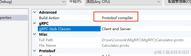 右键Link.proto文件选择属性,生成操作选择如图: