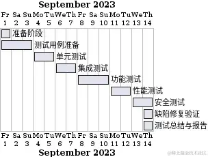 这只是一个示例,实际的测试任务和安排可能因项目的特定需求而有所不同。在规划过程中,请确保任务分配合理,测试人员的技能与任务相匹配,并留出时间以处理未预料的问题和紧急情况。