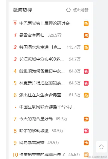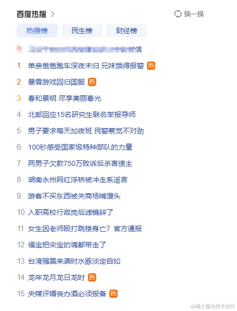 现如今每个互联网平台都会提供一个排行版的功能,供人们预览最新最有热度的一些消息,比如百度: