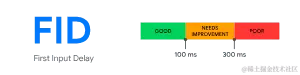 First input dealy,指的是用户首次与网页互动时的延迟时间,更详细的解释是,是从用户首次与网页互动(即,点击链接、点按按钮或使用由 JavaScript 提供支持的自定义控件)到浏览器实际能够开始处理事件处理脚本以响应相应互动的时间。