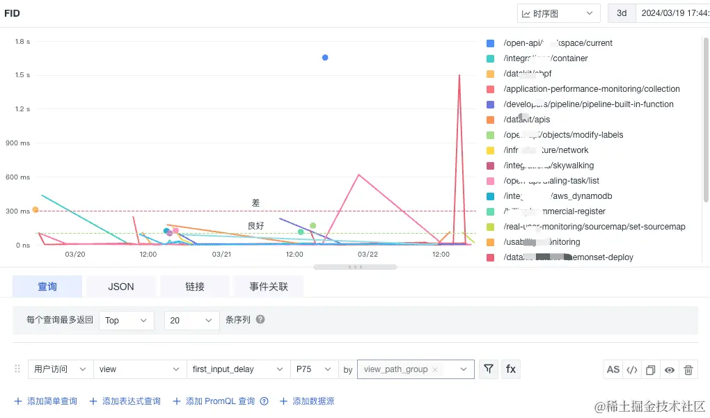 可以根据不同的页面组来查看不同页面之间的 FID 的指标情况,来合理安排对 FID 的优化工作: