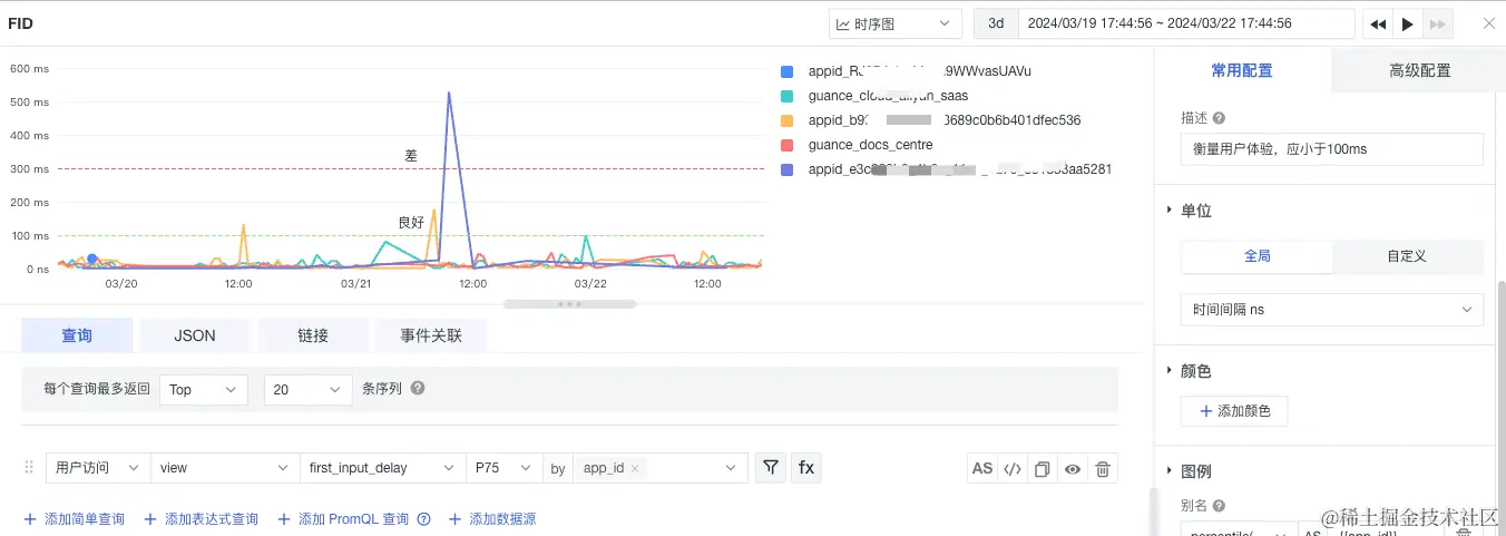 通过时序图能够展示随着时间变化的 FID 的不同应用的情况,根据应用的指标表现来有针对的优化 FID :