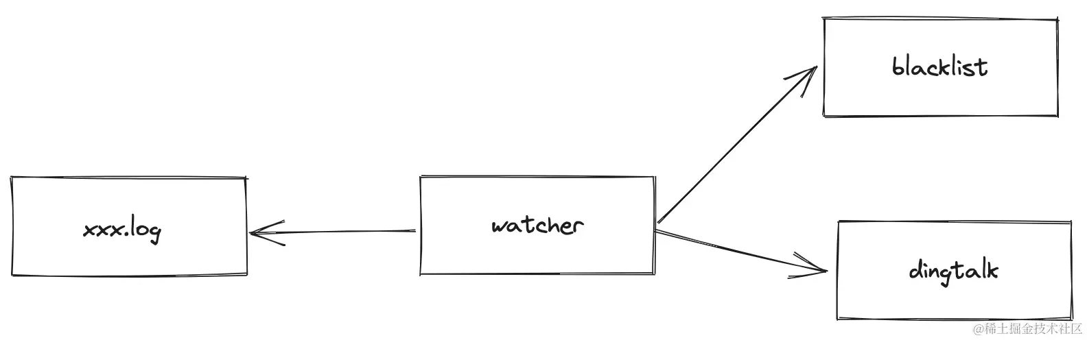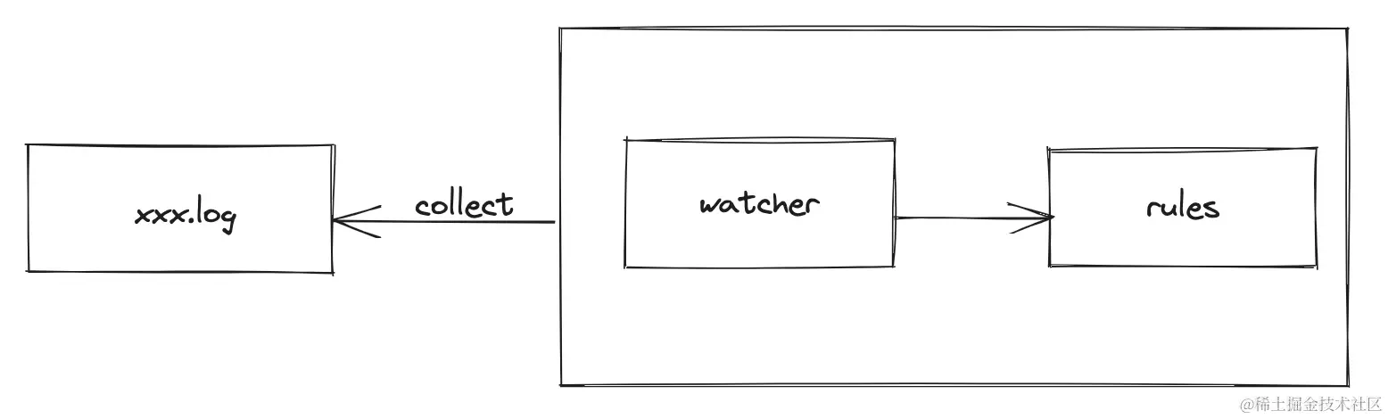 首先需要一个功能来实时读取日志文件,类似于 Linux 的 tail -n 1 xxx.log,可以将其称为 watcher 模块。watcher 模块读取的数据需要进行规则匹配。最简单的做法就是对字符串进行 contains 判断,类似于 |grep rule,将这个功能称为 rules 模块。