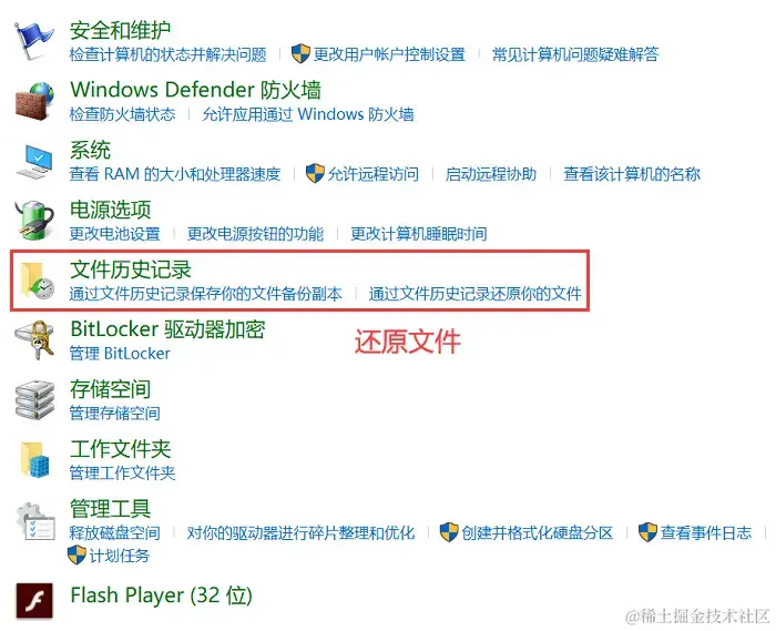方法二:使用文件历史记录恢复文件