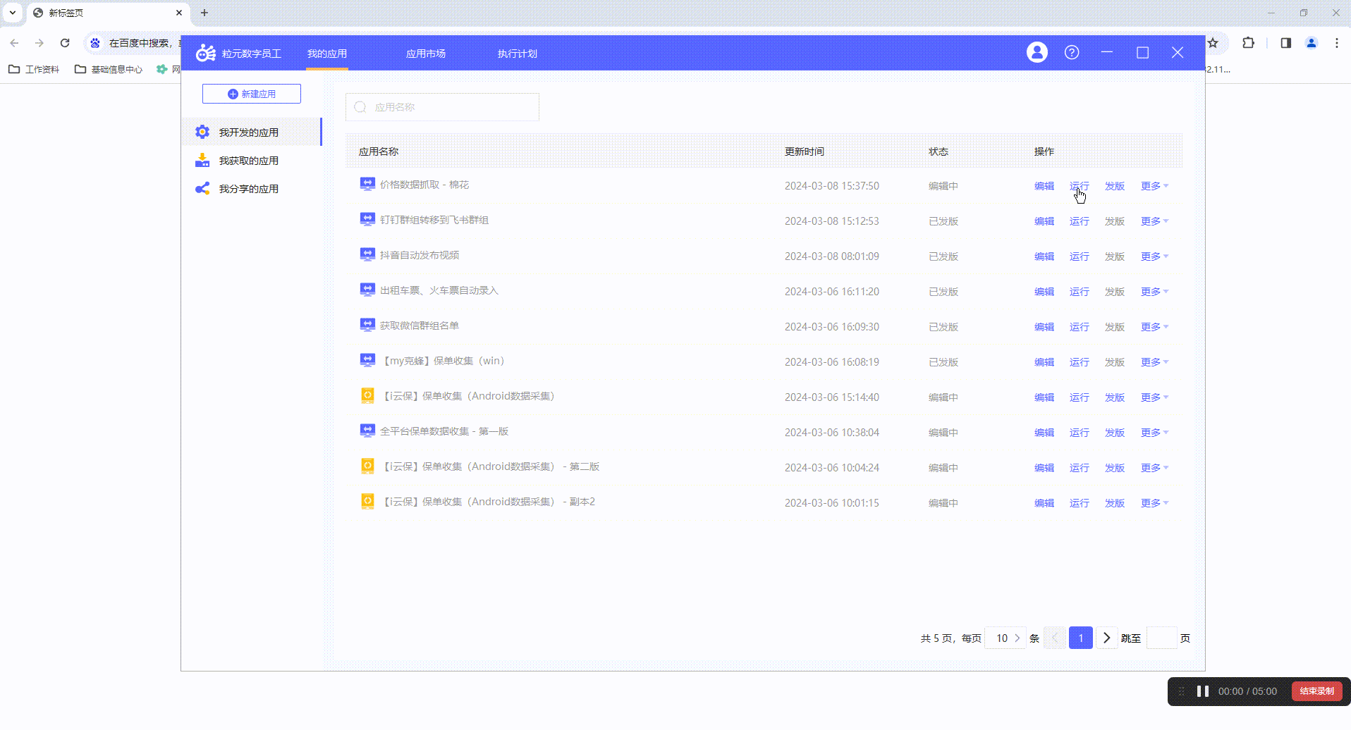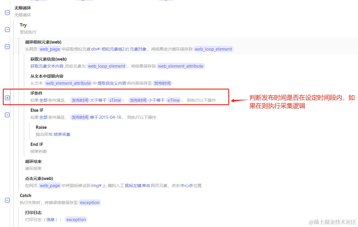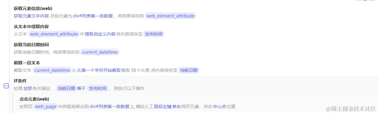 这里我们采用“粒元数字员工”做了一个简单的自动化采集流程,每日定时采集数据,并且可以根据需要进行补充采集漏采的数据。