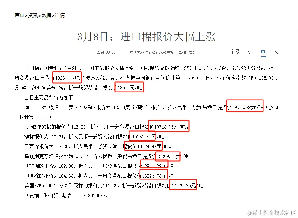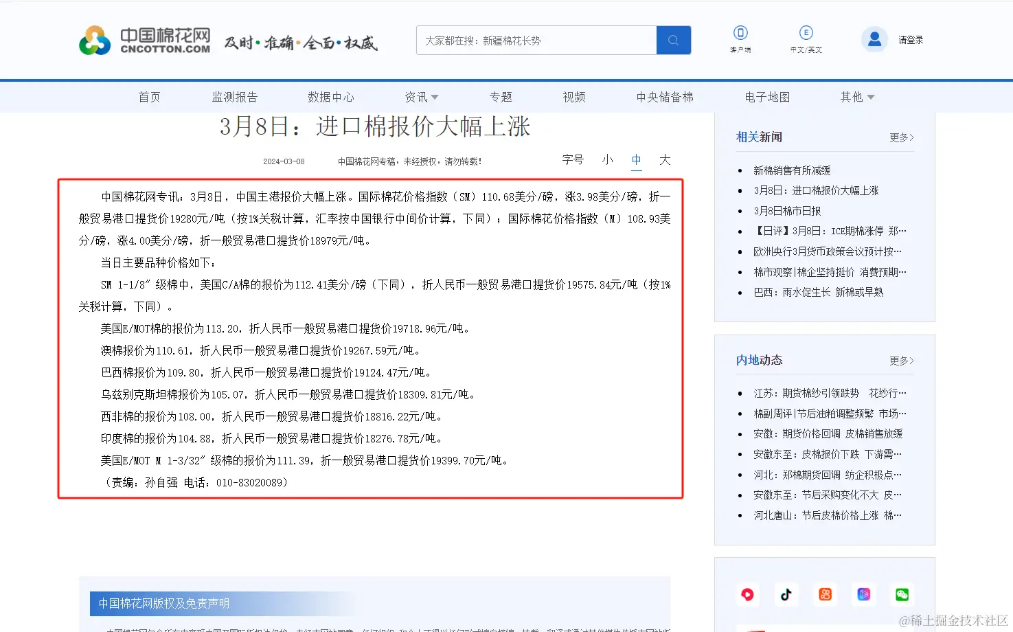 - 按照指定网站打开网站,这里以进口棉价格为例,进口保价数据地址:www.cncotton.com/#/list?name…