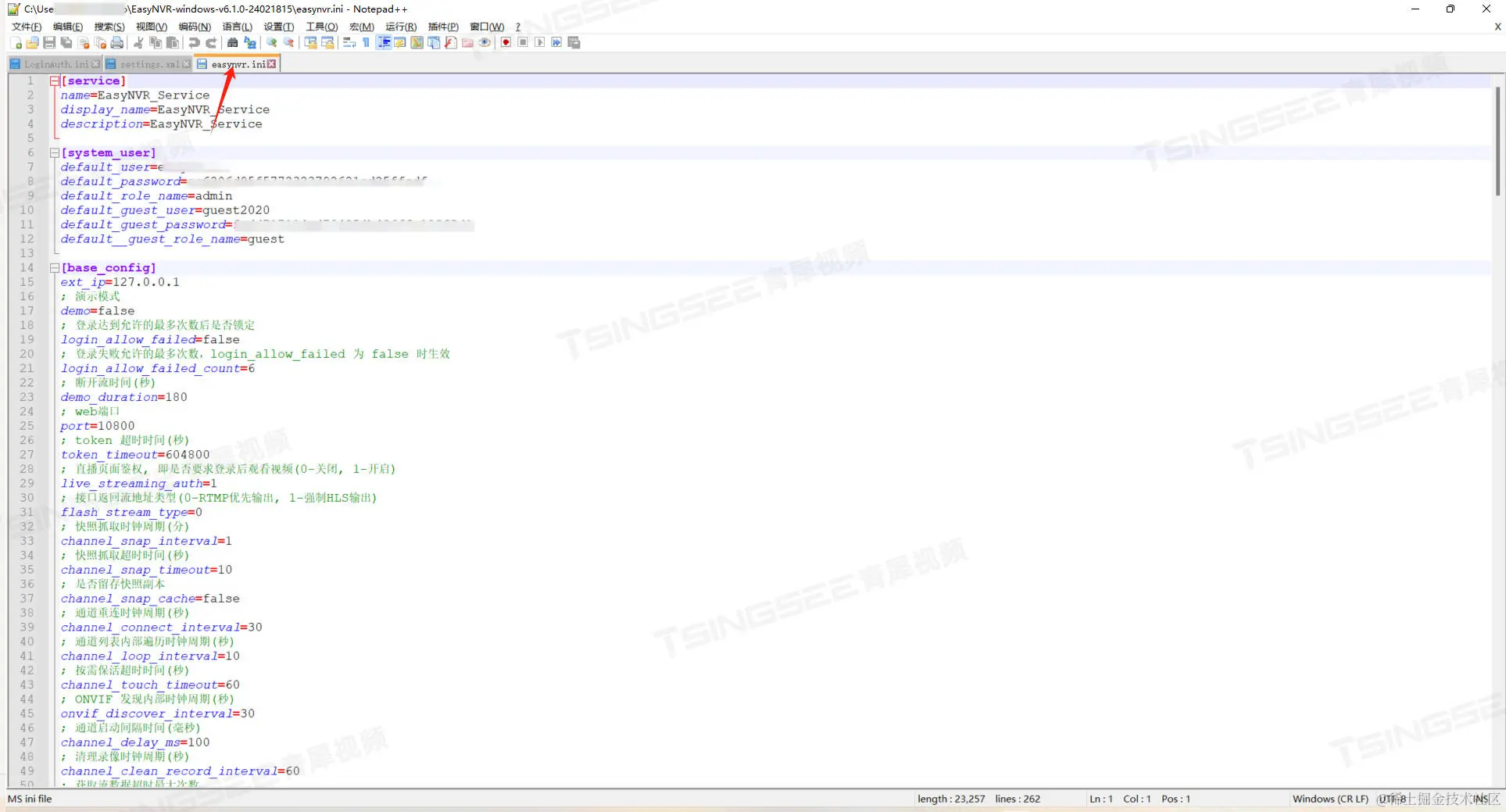 1)打开EasyNVR的配置文件;
