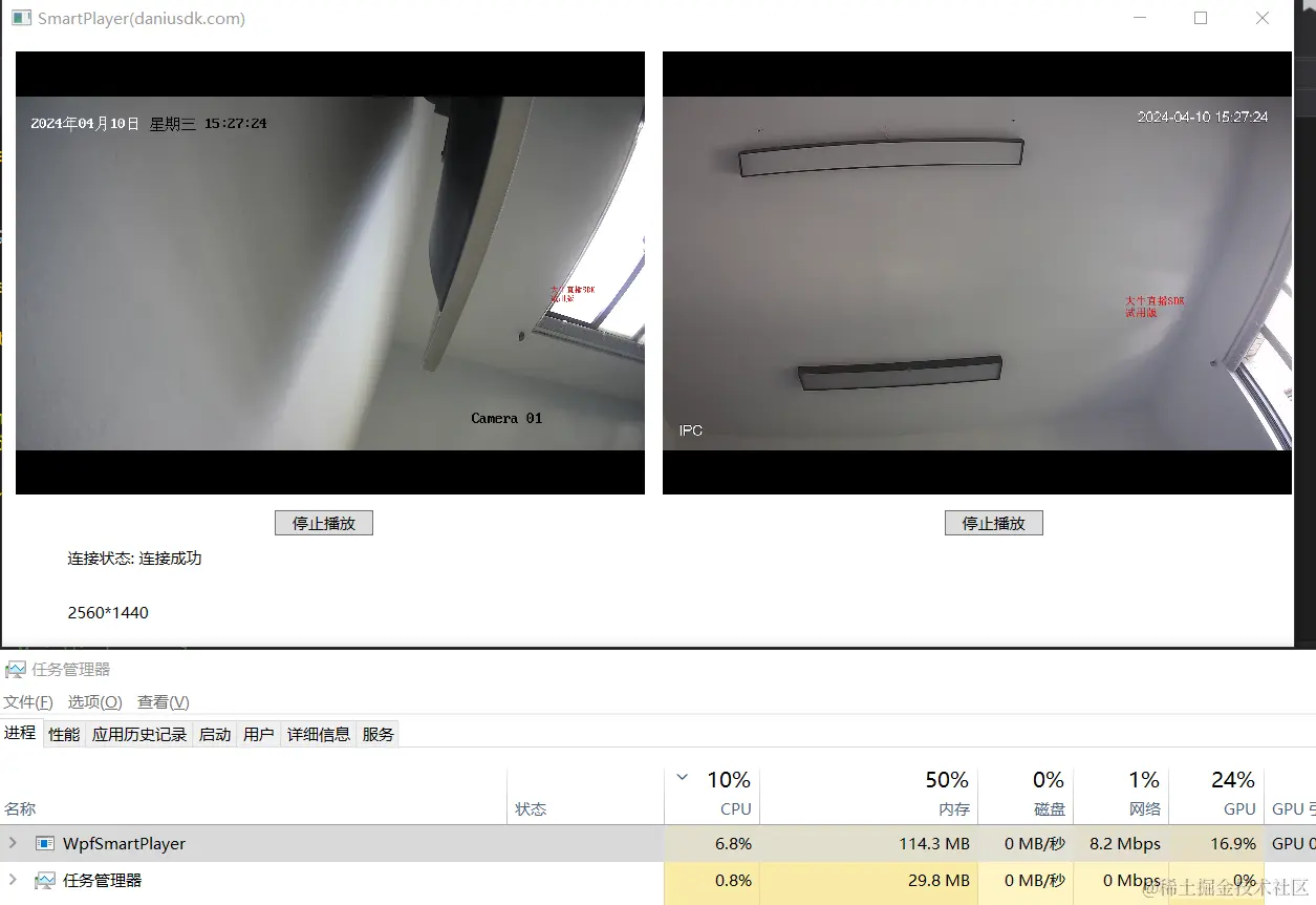 为了便于多实例集成参考,以播放2路为例(一路2560*1440,一路1920*1080):