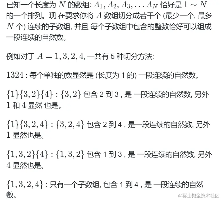 如何判断区间[i,j]是否可以组成一段连续的自然数? 只需区间最大值 - 区间最小值 == j - i (区间长度)即可