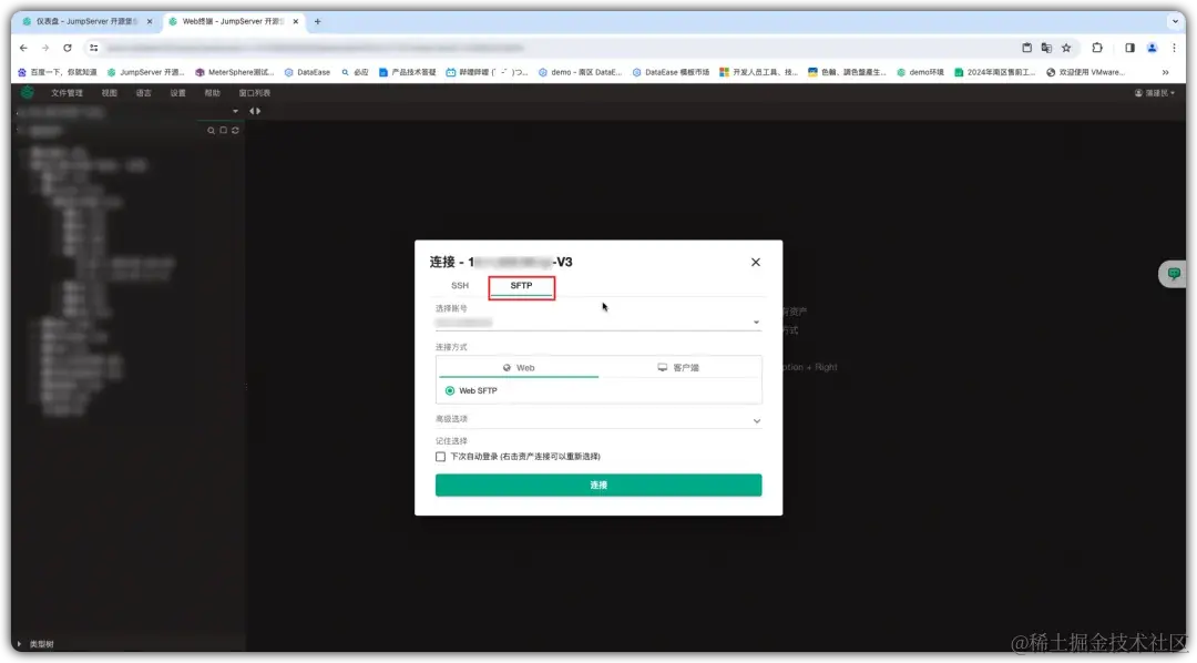 用户选择通过SFTP协议连接资产,进行文件传输。具体步骤如下: