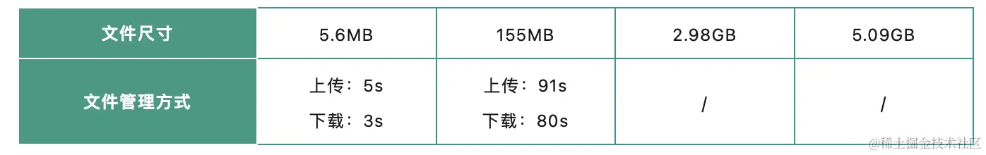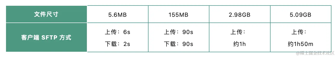 ▲ 表2 不同尺寸的文件通过SFTP文件管理方式传输文件的效果对比