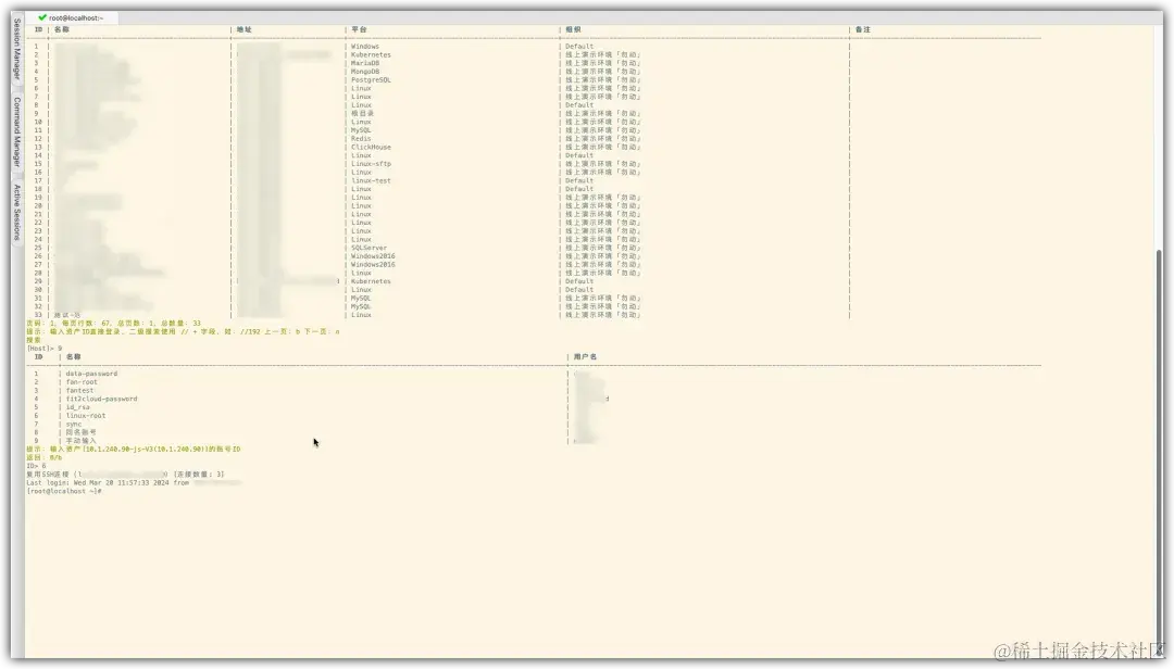 ② 登录成功后,用户选择需要连接的资产和所使用的资产账号;