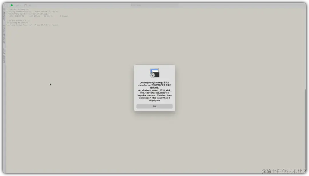 ■ rz和sz命令文件传输方式有文件大小的限制,传输文件的上限为500MB。
