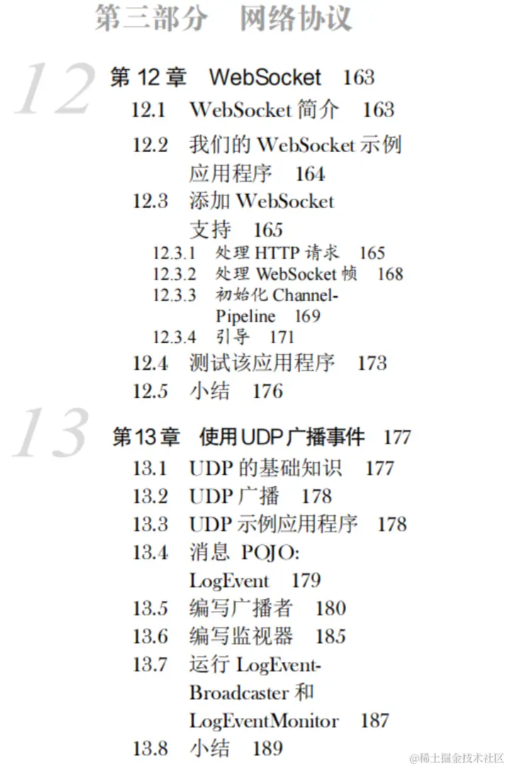 通过对第 13 章中 Netty 对于用户数据报协议(UDP)的支持的学习,我们将结束第三部分。在这一章中,你将会构建可适用于多种实际用途的广播服务器和监视器客户端。