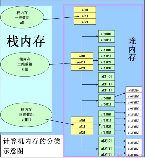 三维数组是数组的数组的数组,即每个元素都是一个二维数组。三维数组常用于表示具有三个维度的数据结构。