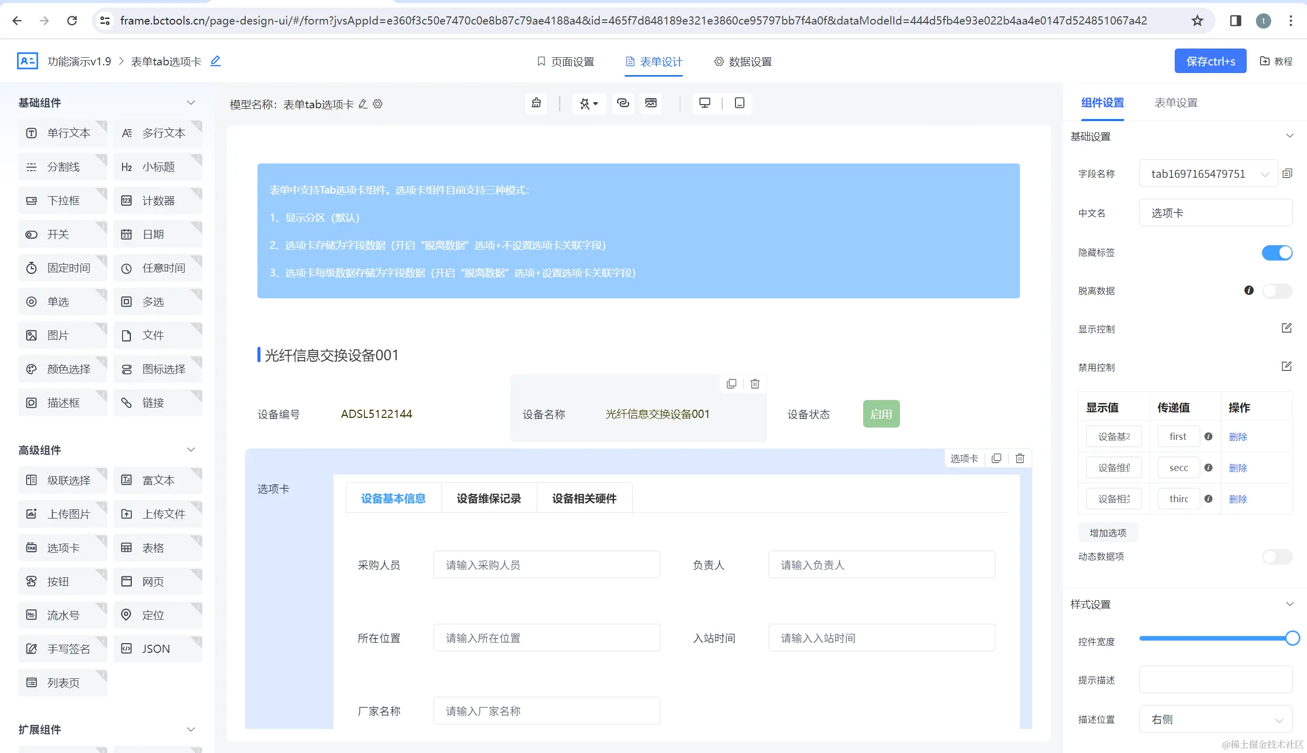 表单配置器,表单字段设置、关联数据模型、设置字段相关联动效果、设置表单样式、设置表单联动逻辑、支持主从表单(支持1对多)等: