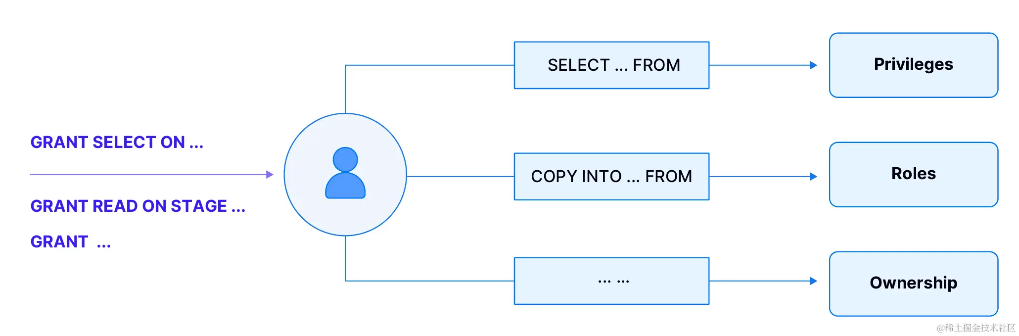 用户需要特定的权限才能在 Databend 中执行特定操作。例如,要查询表,用户至少需要具有对该表的 SELECT 权限,要读取 Stage 中的数据集,则最少需要对该 stage 的 READ 权限。