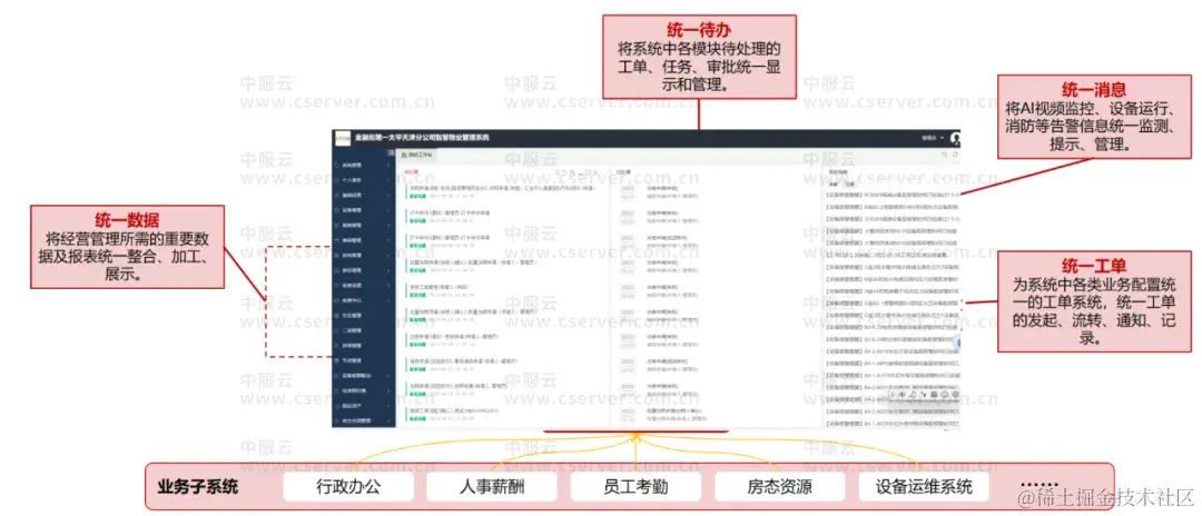 伴随物联网、人工智能等技术的迅速发展和智能化水平的提高,智慧园区成为了现代区域经济高质量发展的重要组成部分,上承智慧城市的建设,下接智慧运营和管理。智慧园区是一种基于信息技术的智能化管理模式,通过物联网、大数据、人工智能等新一代信息技术手段,实现对园区内各种设施、设备、人员的监控和管理,旨在提高园区的管理效率、资源利用效率和服务水平,同时为企业提供更加优质的生产和营商环境。中服云新版智慧园区平台,其宗旨在于打造更加高效、舒适、智慧的企业生产、营商环境。 其基于物联网、云计算、大数据等信息技术打造园区数字化平台,全面整合园区的设施和资源,监测、分析、管理园区各项数据,实现园区业务统一管理、设备统一运维、能耗统一管控、数据统一决策,使园区管理者、入驻企业、环境和人形成有机的整体,促进园区绿色可持续发展。