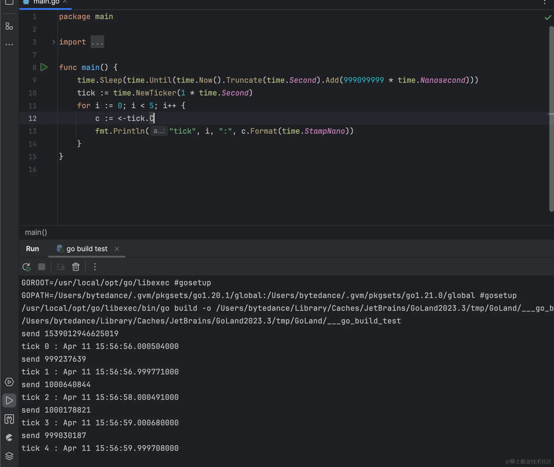 目前线上的服务使用的是Go 1.20版本,我们看下go 1.20版本的go ticker如何触发运行的,这里不会展示完整的timer实现链,如果想了解timer整体实现可以参考 深入解析go Timer 和Ticker实现原理