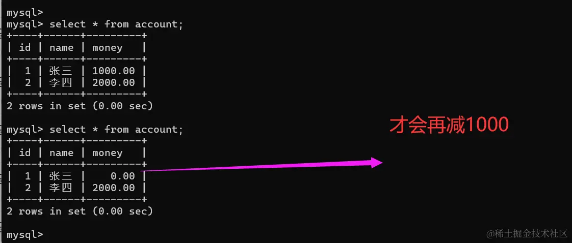 insert into account(name, money) VALUES ('张三',2000), ('李四',2000);