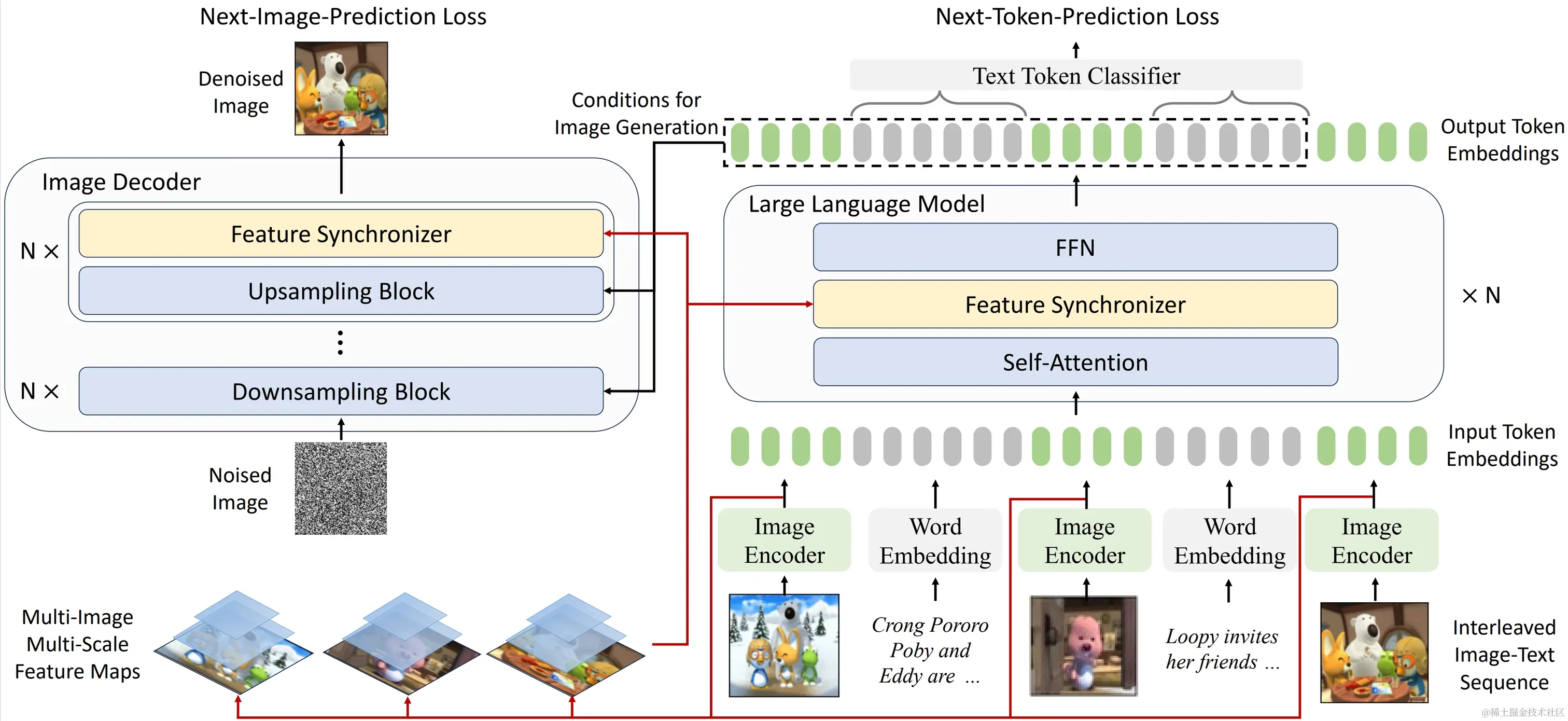 MM-Interleaved模型的核心在于其多模态特征同步器,它能够动态注入多张高分辨率图像的细粒度特征到多模态大模型和图像解码器中,实现对文本和图像的解码生成的同时进行跨模态的特征同步。这一设计不仅提升了模型在理解高细节图像时的能力,还使得模型能够根据文本提示精准生成对应的图像内容,无论是对复杂的多模态上下文的理解,还是对不同风格图像的生成,MM-Interleaved都展现出了卓越的性能。