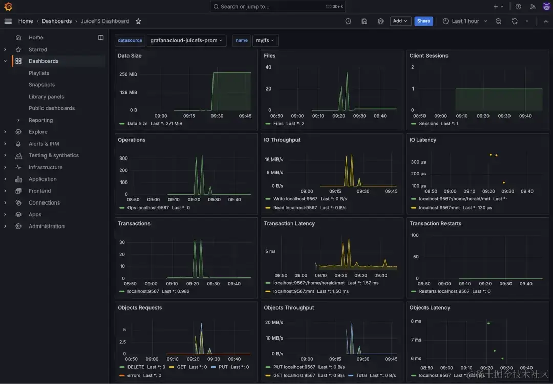 本文主要介绍了如何使用 Grafana Cloud 为 JuiceFS 搭建可视化的状态监控系统,为了满足不同经验背景的读者需要,每个环节尽量选择最简单的方式来实现。