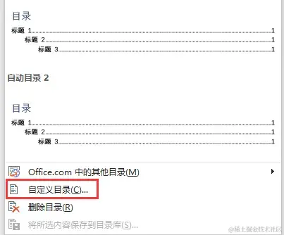 (4)转到 【引用】 选项卡,在【目录】组中点击【目录】按钮,从下拉菜单中选择一个预定义的目录样式,或者选择 【自定义目录】以进行更多个性化设置;
