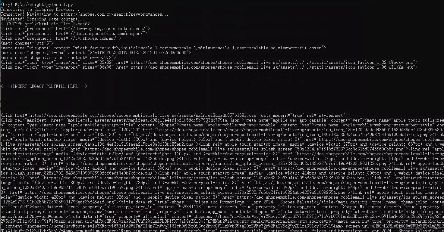 print('Connected! Navigating to https://shopee.com.my/search?keyword=shoes...')