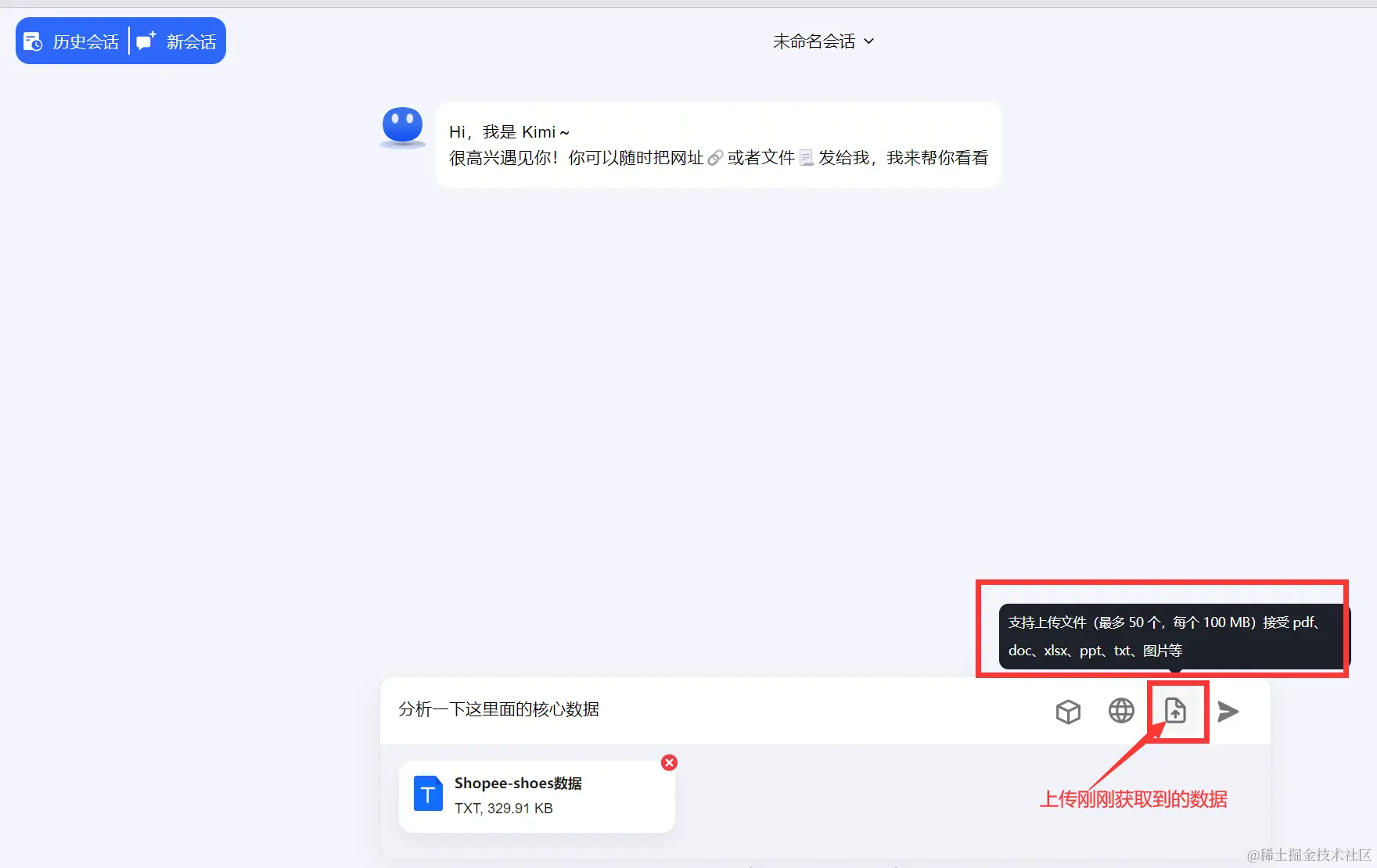 拿到数据后,就可以采集到的数据开始分析了,这里我们这里选择将其写入txt,然后将txt文件输入到kimi大模型中,让强大的AI帮我们对数据进行分析。