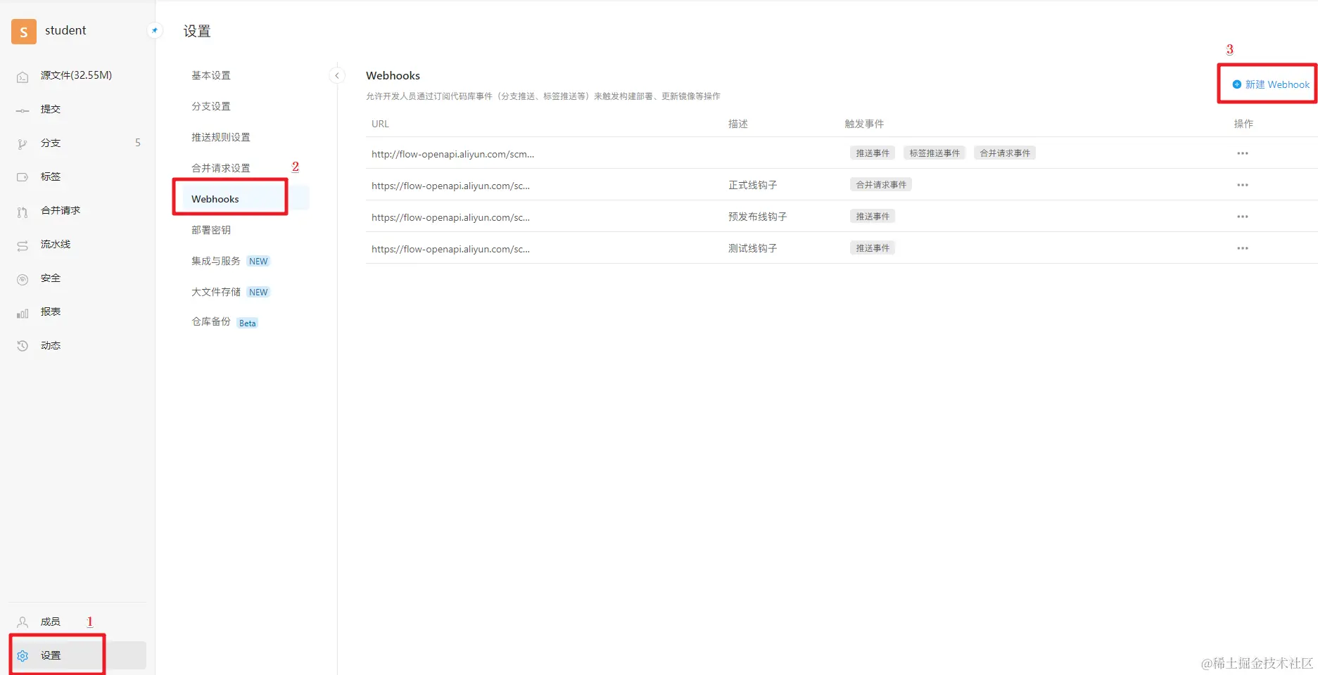CodeUp后台设置webhook