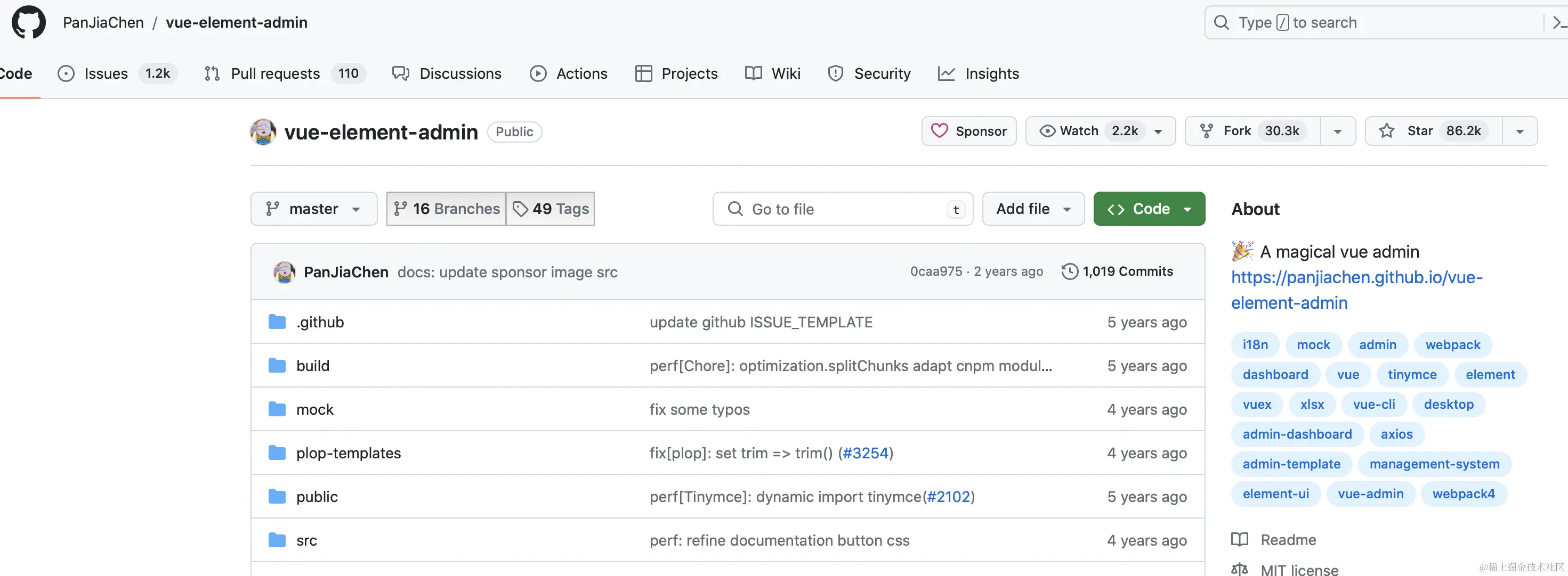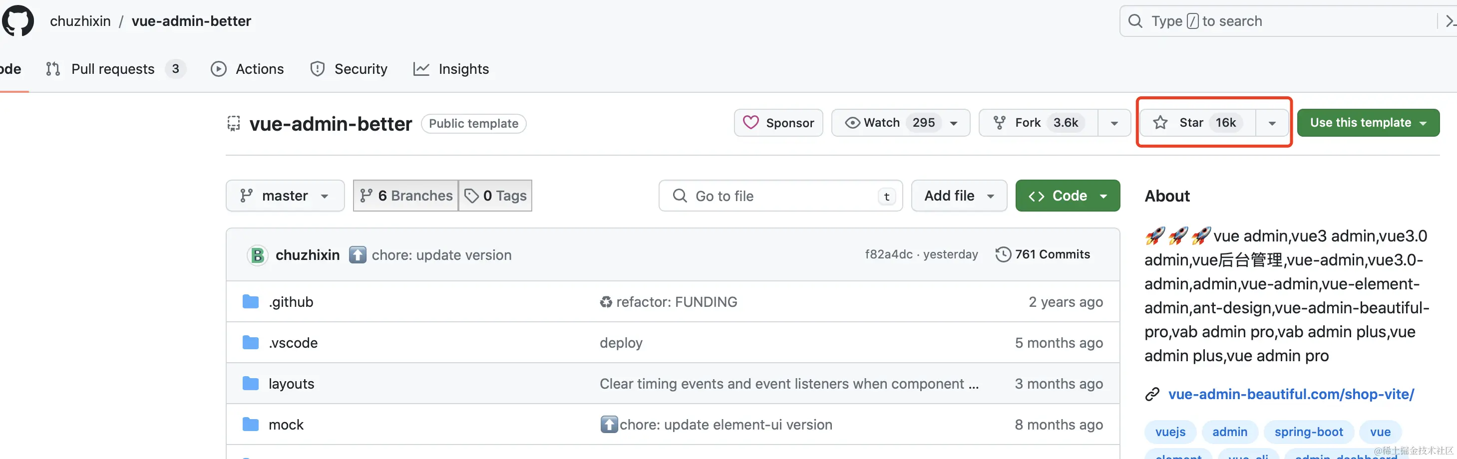 基于Vue和Element-UI实现的后台前端解决方案,使用了最新的前端技术栈,内置了i18n国际化解决方案,动态路由,权限验证等。Github上已被Star86.2k,这个就牛逼了,功能丰富,界面美观,V哥觉得还是很不错的。