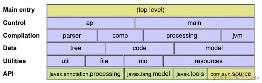 由于不同语言的语义分析实现差异较大,没有通用的语义分析器生成工具。因此我们直接来阅读一下Java编译器中的相关源码,了解一下实现逻辑。javac中语义分析的源码位于com.sun.tools.javac.code和com.sun.tools.javac.comp包中。