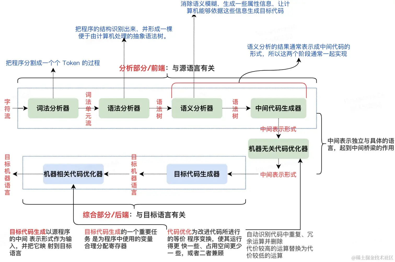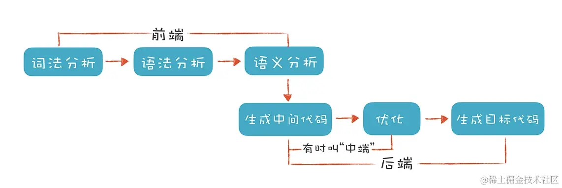 主要了解前端和中端相关理论知识,后端部分和目标机器代码、特定机器架构相关一般很少用到可视化中。本文主要讲述前端部分内容,中端部分后面再另写文章。