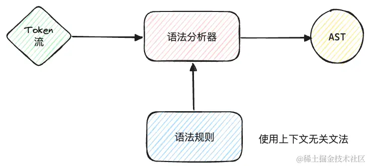 语法分析又称解析(parsing),它在词法分析后执行。它将tokens组织成语法结构,通常是一棵抽象语法树(Abstract Syntax Tree, AST),这棵树表示了源代码的语法结构。语法分析器需要根据一组预定义的语法规则来分析词法单元序列。这些规则通常以上下文无关文法(Context-Free Grammar, CFG)的形式定义,其中每个规则定义了语言中的一个结构如何由其他结构组成。