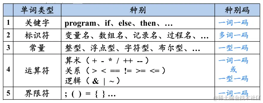 token:<种别码,属性值>