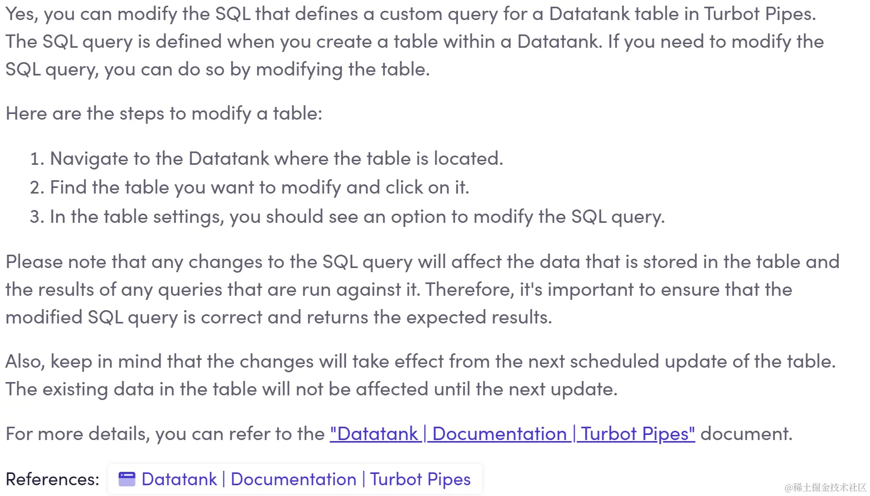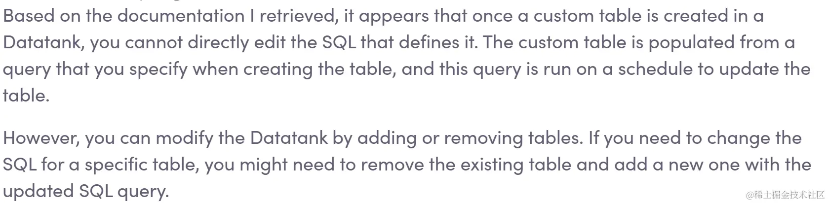 与此处描述的重写无关,我最近有一个问题 Datatank,Pipes(Steampipe 的托管版本)的一项功能,可保留在其他瞬态查询结果中。我的问题是:你能编辑定义 Datatank 自定义查询的 SQL 吗?我相当肯定答案是肯定的,但自从我使用该功能以来已经有一段时间了,所以我询问了 Unblocked,它说不行。
