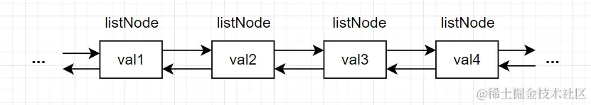 - 双端: listNode有 prev 和 next 指针, 可以以的时间复杂度获取某个节点的前置节点和后置节点