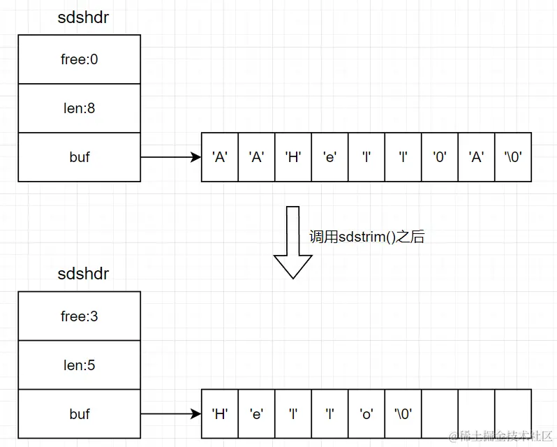 执行sdstrim(s, "AA..");后SDS的结构变化如下图所示: