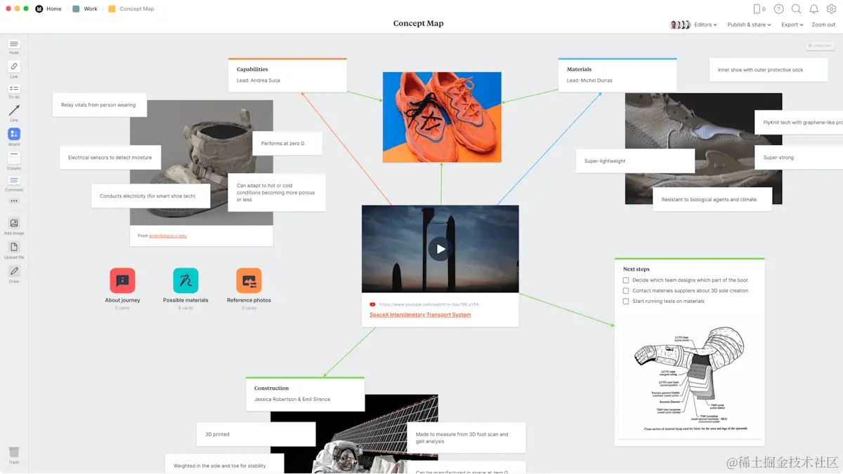 功能性与定制化:Milanote 强调的是信息的整合和组织。用户可以将文本、图片、链接和其他多媒体内容整合到一个项目中,通过拖放的方式轻松管理这些内容。