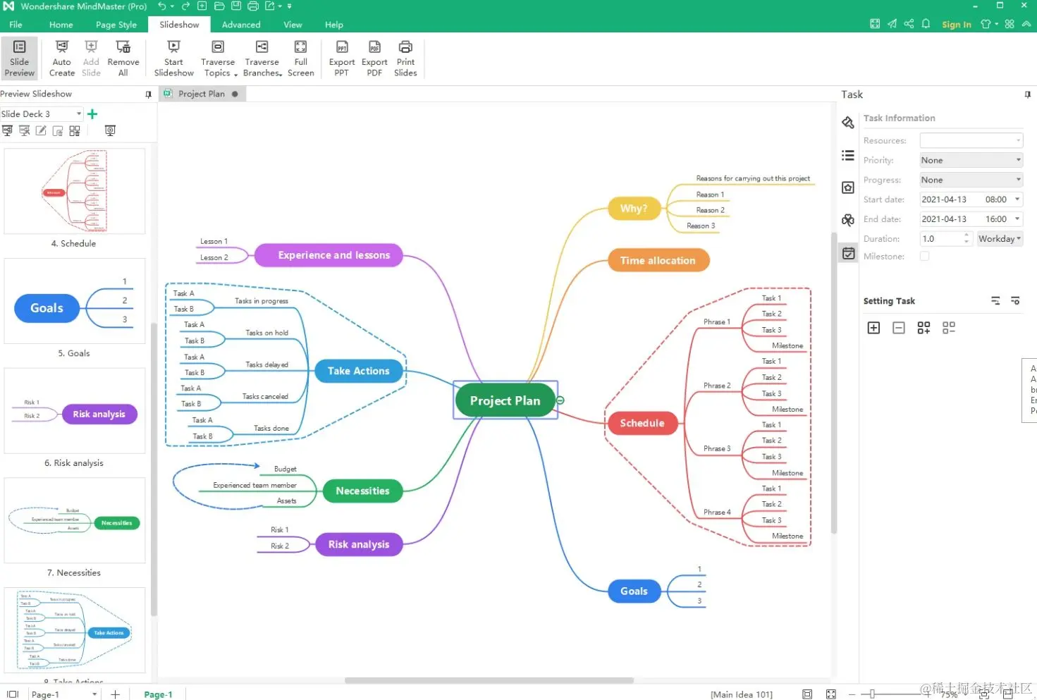 界面设计和用户体验:MindGenius 的界面设计注重功能性和效率,提供了清晰的结构和直观的操作方式。软件支持多种视图模式,包括思维导图视图、任务视图和时间线视图,用户可以根据自己的需求快速切换视图。